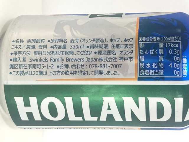 こちらが『ホランディア プレミアム ノンアルコールビール』(缶330ml)。スーパーマーケットにて91円(税込)で購入しました。