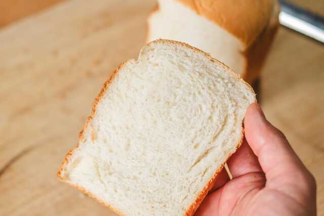 焼きたてのパンを切ってみるとこの通り、きめ細やかでみっちりとした出来栄え。