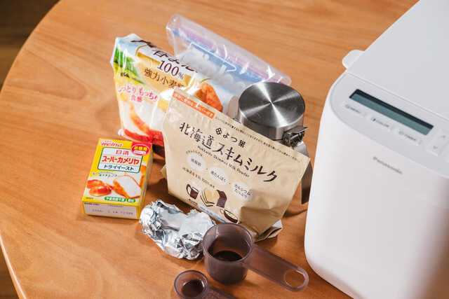 材料を用意したら、あとは付属の計量カップで計って順番に入れていくだけでOKです。