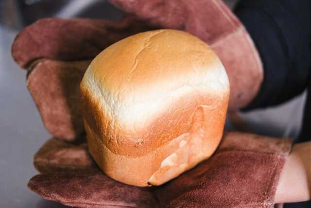 2分ほど冷ましてから取りだせば、キレイな焼き色の付いたパンの完成です。