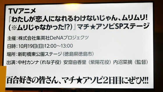そして、2025年の百合は「ガールズラブコメ」が来ているとして、ライトノベル『わたしが恋人になれるわけないじゃん、ムリムリ!(※ムリじゃなかった!?)』、通称『わたなれ』が紹介されました。テレビアニメも2025年夏に放送され、続編の制作およびテレビ放送が決定し、2025年11月にはテレビ放送に先駆けて全5話の特別編集版『わたしが恋人になれるわけないじゃん、ムリムリ!(※ムリじゃなかった!?)~ネクストシャイン!~』が劇場公開されます。マチ★アソビ Vo.29でも、『わたなれ』のイベントが開かれます。