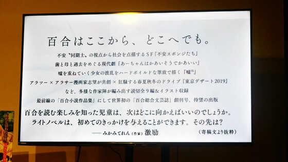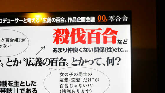 たとえば、初期にアンソロジーとして取り上げた「殺伐百合」は、女の子が仲良くするだけではなく、逆にあまり仲良くない関係性も百合と捉えています。比良坂氏は「(『殺伐百合アンソロジー』は)ちゃんと辞書の意味もありますからね」とコメント。