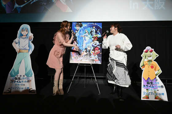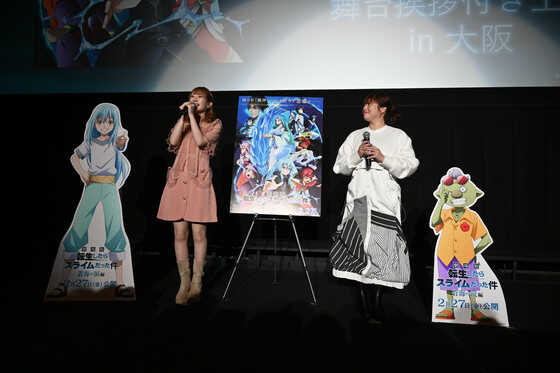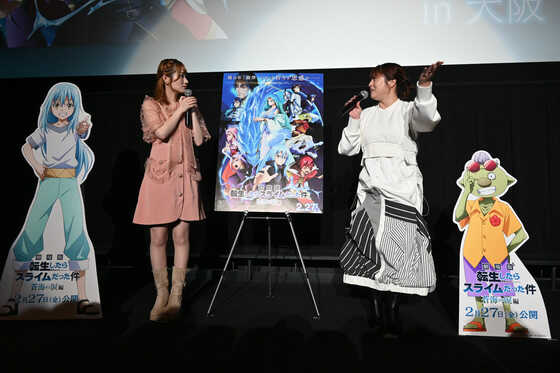 人気シリーズの劇場版第2弾として2026年3月6日(金)に公開されると3日間で22万5000人を動員し、興行収入3億円超えの大ヒットスタート。公開2周目週末までに43万人を動員している『劇場版 転生したらスライムだった件 蒼海の涙編』の大ヒット記念舞台挨拶付き上映が大阪ステーションシティシネマで行われ、主人公リムル・テンペスト役の岡咲美保さん、ゴブタ役・泊明日菜さんが登壇しました。
