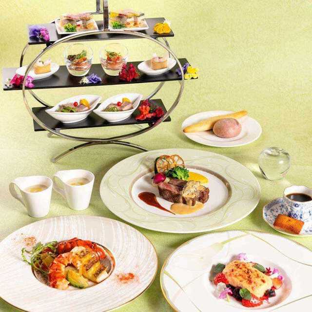 いちおしのコースは「Starry ~スターリー~」。アフタヌーンティーのようにスタンドで提供される華やかなオードブルが特徴で、大切な人とシェアしながらいただけるのが楽しい。料理は、赤ワインを合わせた鰹出汁と新牛蒡のピューレでいただくオマール海老と真鯛や、黒毛和牛サーロインのグリルなど、季節替わりの品々。日本の伝統食材を使いつつ、シェフのアイデアが光る新しい味わいに出会える。