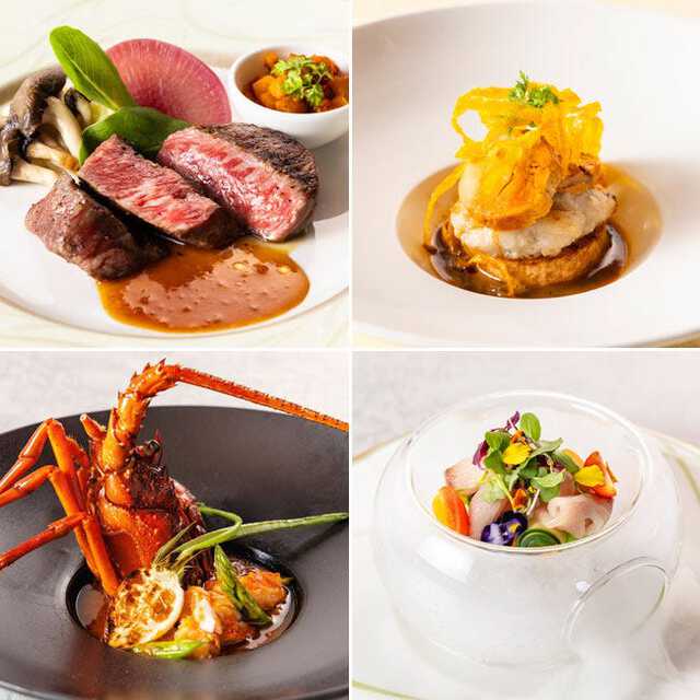 ディナーコースはほかに「Twilight ~トワイライト~」と「Meteor~メテオ~」の2種類。いずれも黒毛和牛や伊勢海老といった豪華な食材を使いつつ、黒酢や醤油、味噌など日本の伝統食材を活かした品々が味わえる。メニューは季節替わりなので、訪れるたびに異なる味に出会えるのもうれしい。