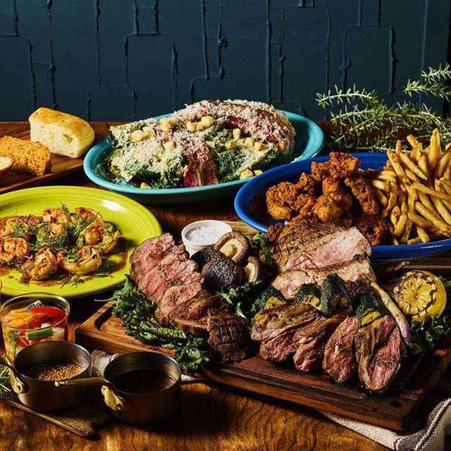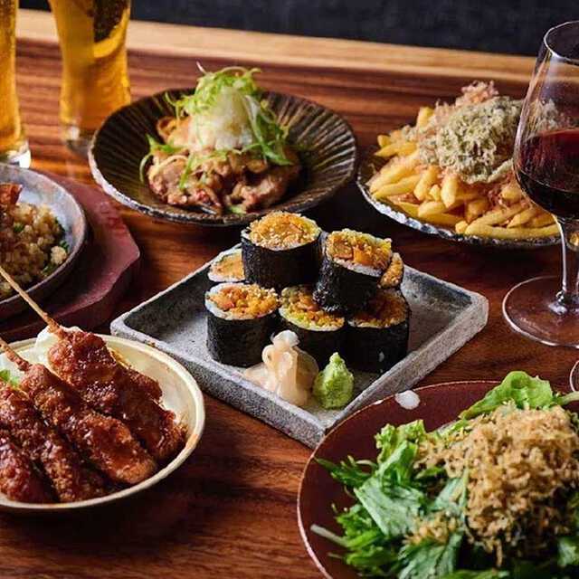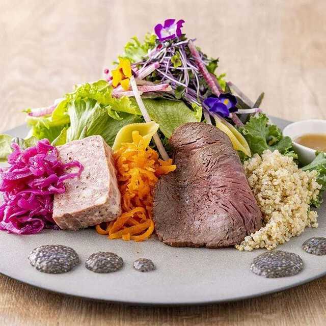 こちらの名物は、産直肉や採れたて野菜を活かしたモダンアメリカン料理。肉好きで集うなら、ガツンとインパクト大の肉料理を堪能できる「3時間飲放題付きの肉盛りシェアコース」を選んでみて。低温調理ポークロース、柔らかな牛タンなど、厳選グリル肉を豪華に盛り合わせたプレートが登場。仲間とシェアして味わえば、最高の飲み会がかないそう。スパークリング、ハイボールなどのお酒とともに、絶品のお肉を頬張って。