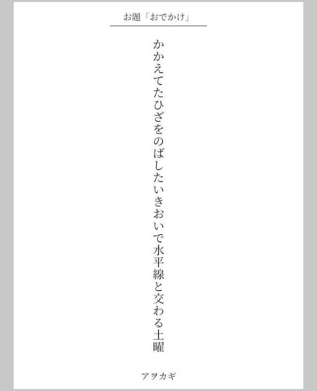 スマホでの短歌の推敲のしやすさにこだわった短歌のSNSアプリ。縦書きでフォントや色をカスタマイズすることができ、自分流に短歌を表現することができる。月間利用ユーザーは8000人。月間投稿数30000首以上を誇る国内トップクラスの短歌コミュニティ