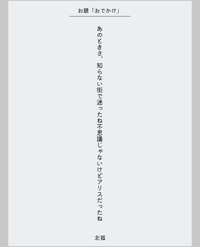 あのときさ、知らない街で迷ったね不思議じゃないけどアリスだったね (投稿者/北狐さん)