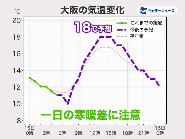 各地とも朝晩は冷えるため、寒暖の変化に注意が必要です。