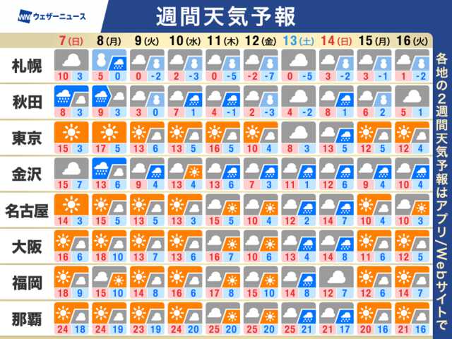 週間天気予報 日本海側は雪や雨の日が多い 太平洋側は空気カラカラ