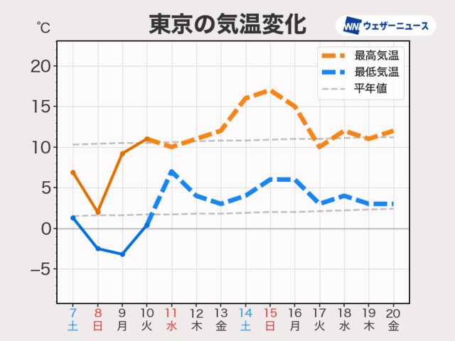 明日11日(水)建国記念の日は広範囲で雨が降った後は、天気が回復し、週後半にかけて寒さが緩んでいく見通しです。