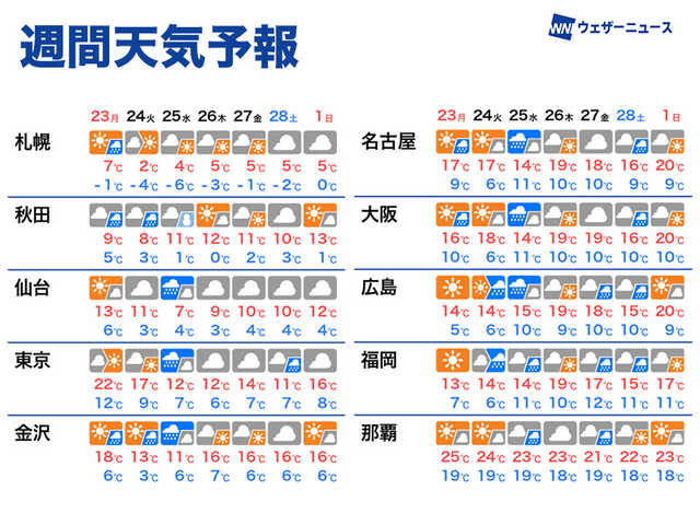 上空の寒気の南下が無いため雨のエリアが広く、雪が降るエリアは東北北部や標高の高い山沿いに限定されるとみています。積雪エリアでは融雪による路面の悪化や屋根からの落雪、雪崩の発生に注意してください。