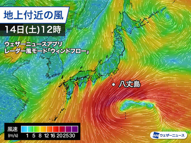 今日14日(土)は本州南岸の発達した低気圧が次第に東に離れ、大陸から移動性の高気圧が接近します。一時的に西高東低の気圧配置となり、西日本や東日本太平洋側は晴れて穏やかな週末です。