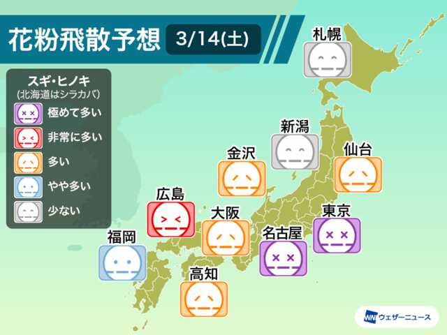 今日3月14日(土)の天気予報 太平洋側は穏やかな週末 伊豆諸島は荒天警戒