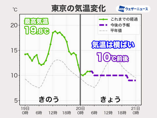 ・関東は雲が多く肌寒い