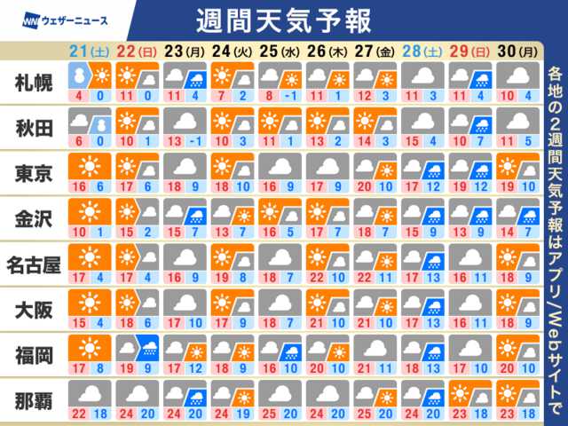 週間天気予報 三連休明けは広く雨 桜の開花進む暖かさもヒノキ花粉に注意