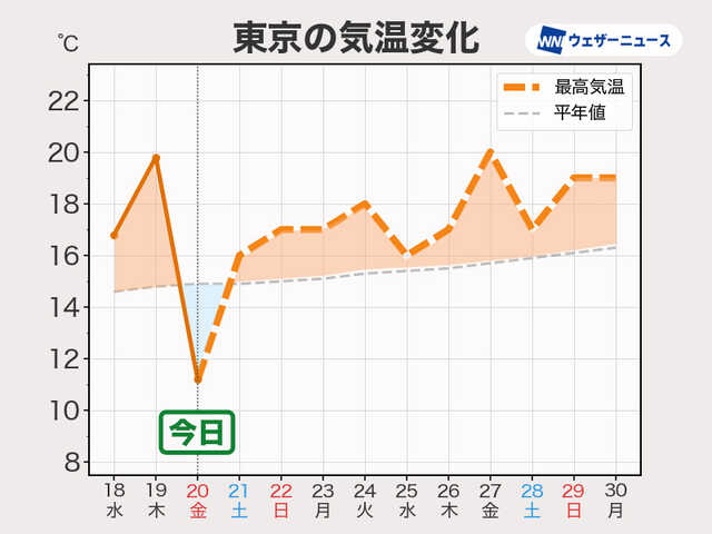 来週にかけての気温は、全国的に平年並みか平年より高めの予想で、昼間は春の暖かさを感じられる日が増えそうです。