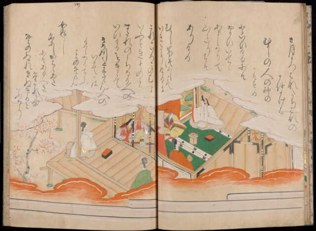 なお、『源氏物語』の「絵合」や「総角」の巻には、登場人物たちが伊勢物語の絵を鑑賞する場面が描かれており、当時の貴族にとって必須の教養であったことが窺えます。