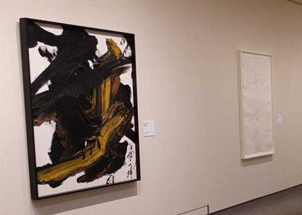下から見上げると、絵の具が驚くほど分厚く盛り上がっています。「どうやって塗ったの?」と不思議でしたが、なんと足で描く「フットペインティング」という技法なのだとか。黒い絵の具の躍動感が、気持ちをシャキッと引き締めてくれました。