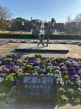 美術館の敷地に入ると、清水多嘉示の彫刻《みどりのリズム》がお出迎えしてくれます。その奥には円形の噴水、通称「ペリカン噴水」があり、水面がキラキラと輝いていました。園内の庭園には季節の花々が植えられていて、散歩を楽しむ人も多く、とても和やかな時間が流れていきます。展示室に入る前から、開放的な空気に癒やされますよ。