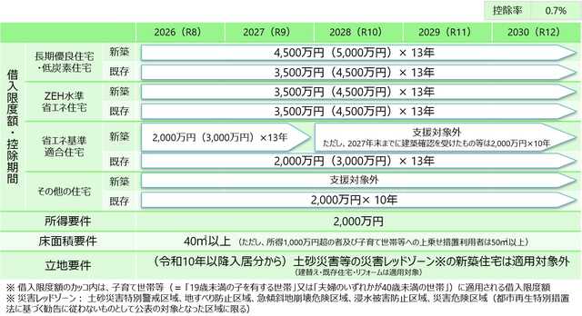 安全性を重視し、土砂災害特別警戒区域などの「災害危険区域」での新築住宅については、2028年以降、住宅ローン控除の適用対象外となります。