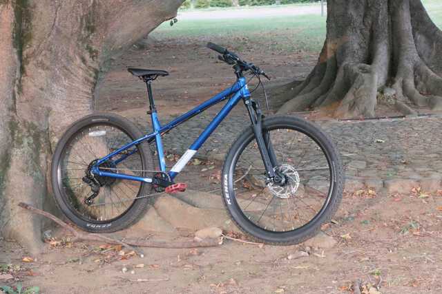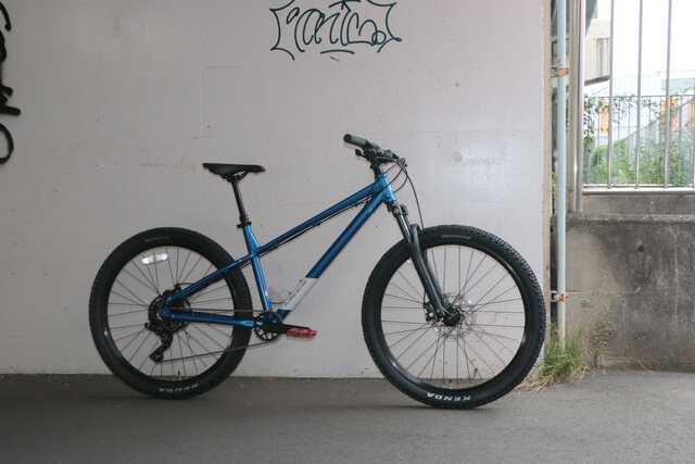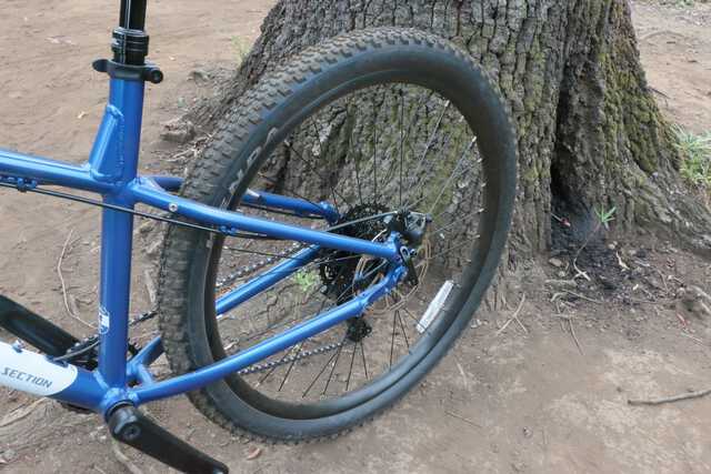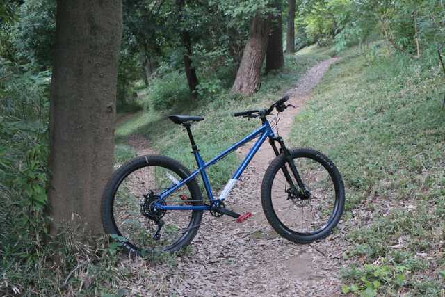 実際に街中やトレイルに持ち込んで試乗してみましたが、舗装路でもノブの低いタイヤを履いていることで軽快に進む感覚を味わえます。タイヤ径は前後とも27.5インチで、少し太めのタイヤなのでクッション性も良く快適な乗り心地でした。