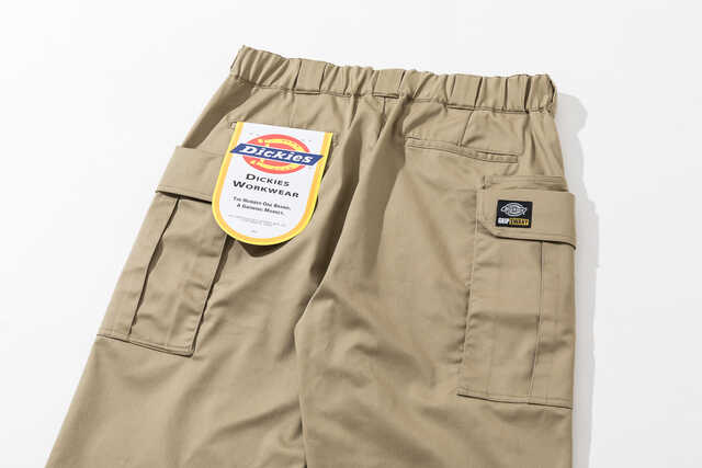 なお、2型ともポケット部分にダブルネームのコラボタグ付き。そして腰裏部分にはDickiesでお馴染みのロゴ入りの特別仕様のスレキが。そのまま履いても良いですし、折り返してコラボを強調するのもアリです。