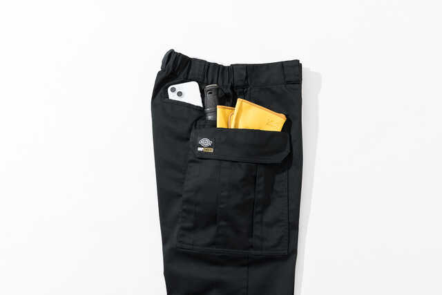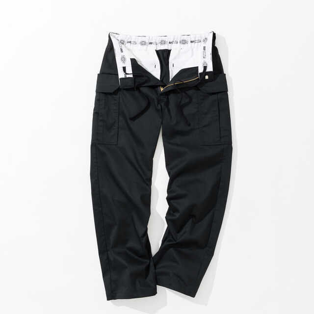 そんな歴史ある両者が生み出したパンツは2型ともにタフな素材感とスタイルを選ばないデザインがポイント。「GRIPSWANY×Dickies FIELD EASY WORK PANTS」は耐久に優れたダブルニー仕様(膝部分を当て布で補強)のパンツをベースにデザイン。
