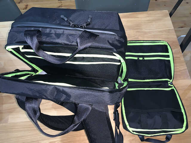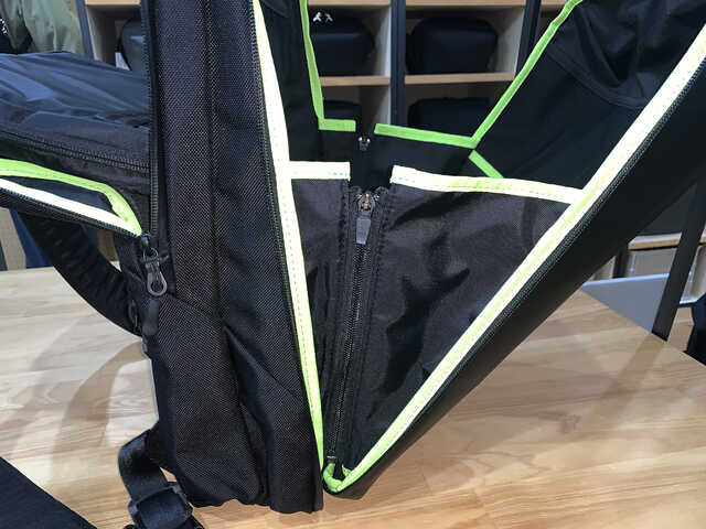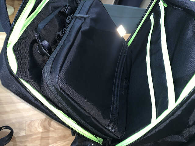 佐野 コレは「モニターも持ち歩きたい」というお客さんからのフィードバックがあったんです。だから、PC本体とモニター、もしくはPC本体とタブレットなどのデバイスを2台収納可能にしました。そして、ガジェット関係を収納できるバッグ・イン・バッグですね。
