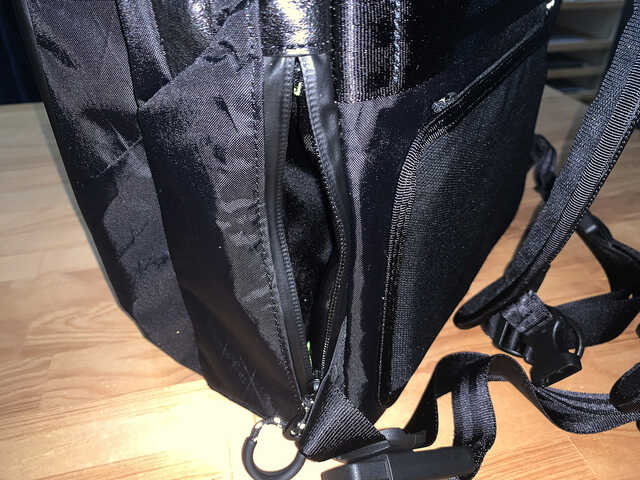 もうひとつのテック用コンパートメント部は約10Lの容量で、注目はなんと言っても16インチ相当のPC、そして14インチ相当のPCもしくはタブレットと、モニターがそれぞれ収納できる専用のスリーブポケット付きで2種類を収納可能なところ。