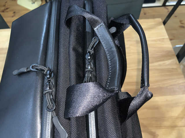 佐野 20周年モデルは見た目や構造は基本的には一緒ですが、表部分の素材をレザーに変更して、X-PACではなくバリスティックナイロンとレザーのコンビネーションにしました。ただ、見た目を変えないためにボトムの幅を変えたりとか、実は型紙を変更していたりで、細かい部分を変えているんですよ。