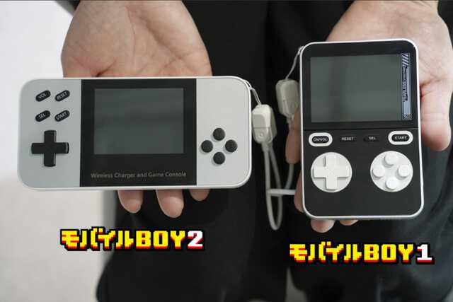 見た目の通り(?)、モバイルバッテリーに液晶とコントローラーがついていてゲームができるわけですが、前作の縦型に加えて横型ディスプレイモデルが登場。ゲーム機として持ったときの安定感が増して、両手で操作しやすい形になっていますが…ドコにこだわってんねん! と思わずにはいられません。見た目もどこか懐かしいというか既視感のあるというか、まさに往年の携帯ゲーム機の雰囲気。ちょっと悔しいけどガジェット好きならちょっと気になっちゃう…。