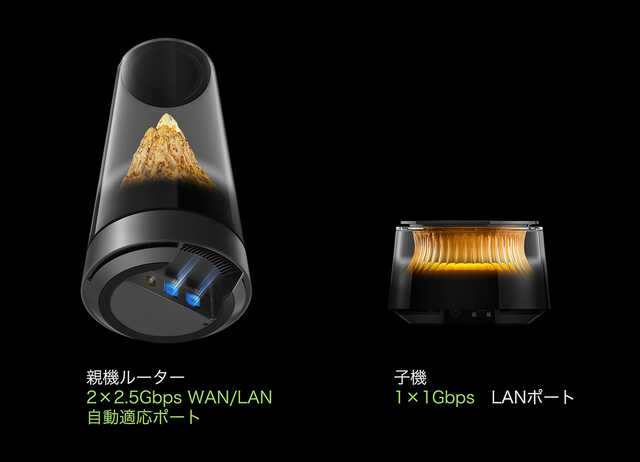 インテリア志向の人にぜひ知ってもらいたい、スマートインテリアのようなWi-Fiルーター。親機単品以外に親機と子機のセット(3万4980円~)も用意されています。