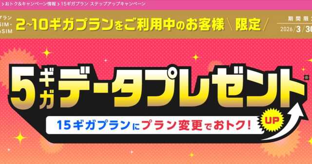 なお、2月1日から2月19日までの期間に15ギガプランへ変更申し込みをした場合もキャンペーンの対象となるとのことだ。ただし、「ハッピースマイルキャンペーン」「15ギガプランお試し割」「ハッピープライスキャンペーン」が適用予定または適用済みの回線は対象外となる。キャンペーンの詳細については特設ページで確認できる。
