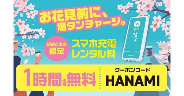 バッテリーレンタル「CHARGESPOT」、新規ユーザー1時間無料の“お花見キャンペーン”
