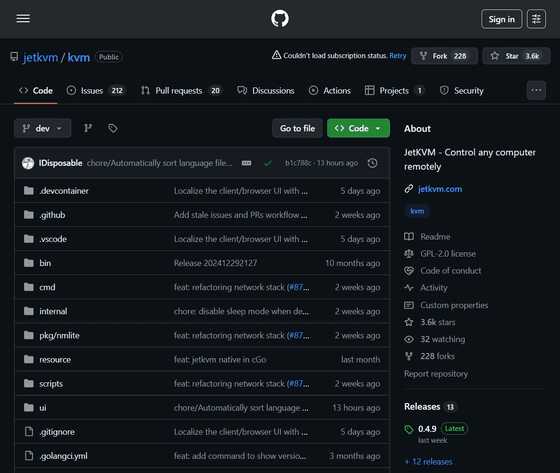 JetKVMはオープンソースであるため、ソースコードはGitHub上で公開されています。