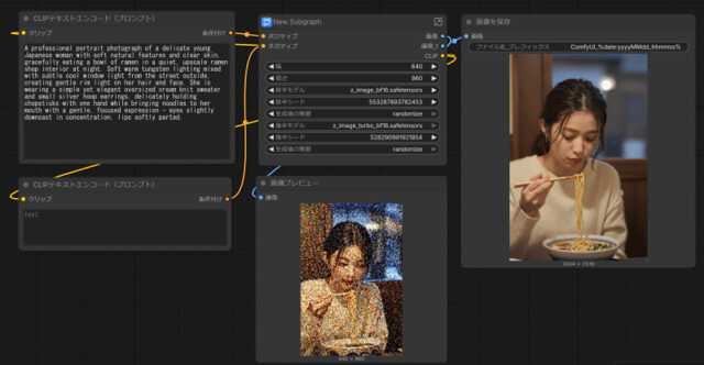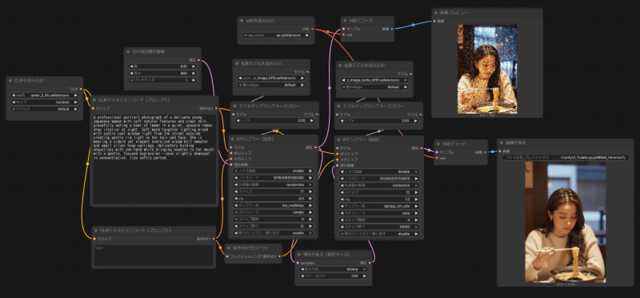 画像を生成するとこんな感じ。ノード形式のUIと比べて各段に分かりやすくなっています。