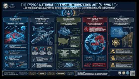 また、GDELTプロジェクトはアメリカの2026年度国防授権法(NDAA)という約3100ページ・約51万語に及ぶ巨大な法案をGemini 3 Proに一度に読み込ませ、法案全体を単一のインフォグラフィックに変換するデモを行いました。さらに分析と実験を重ねた結果、法案全体のテーマ分析や特定分野の解説、関連法案の整理、さらには議員が想定しそうな質問の作成まで行わせる実験も公開しています。PDFをテキスト化して、行番号の削除やテキストのクリーンアップ作業を行うことで、文書全体を約81万トークンに収めてAIが法案を単一の文書として分析できるようにしたとのことです。