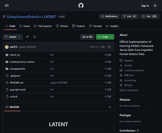 GitHub - GalaxyGeneralRobotics/LATENT: Official implementation of Learning Athletic Humanoid Tennis Skills from Imperfect Human Motion Data · GitHub