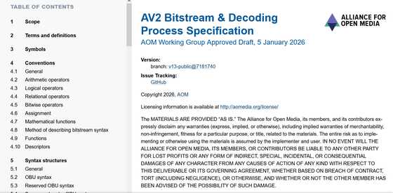 AV2は5年をかけて開発されており、仕様ドラフトが2026年2月1日に公開されました。