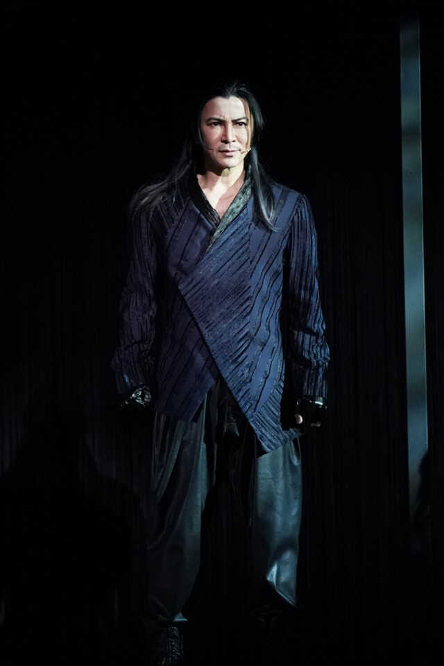 ソロで歌い上げる場面は、花總さんにも引けを取らない堂々たる存在感があり、舞台を力強く支配します。そして暗殺者として戦うシーンでは、機敏なナイフさばきが映え、カッコよさが際立ちます。
