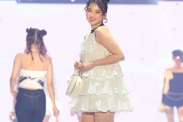 「Darich」のステージに登場した菊池は、歩くたびに軽やかに揺れるホワイトのティアードワンピースに、黒のヒールを合わせた“モノトーン・ガーリー”なスタイルングを披露。すらりと美脚と二の腕をのぞかせ、会場を魅了した。