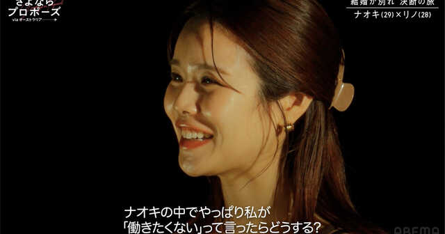 外資系IT企業勤務のナオキと、将来的に専業主婦を希望するリノは、結婚後の「働き方」と「お金」を巡り真っ向から対立。 リノが「ナオキの中で、やっぱり私が『働きたくない』って言ったらどうする?」と問いかけると、ナオキは「何で働きたくないのかにも理由はあると思うけど、やりたいことがあるんだったら、やりたいことができるように一緒に考えたいと思うし、もしどうしても働きたくないとか、そういうことも人間だし絶対にあると思ってて。そういう時はもちろん休憩してもいいし、その間は自分が頑張りたいなと思う」と答えた。
